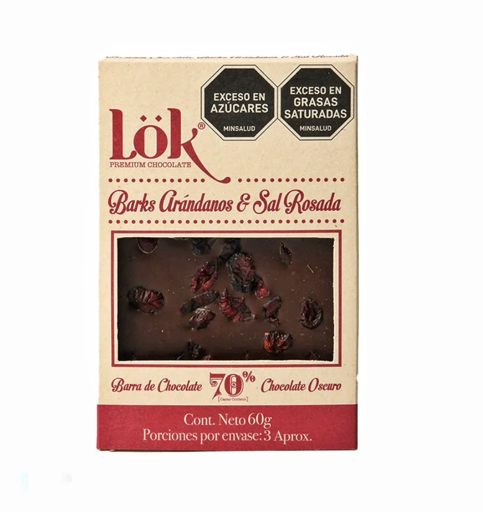 Chocolate oscuro 70% con arándanos y un sutil toque de sal rosada que intensifica los sabores, creando un contraste perfecto entre lo dulce, lo ácido y lo salado.