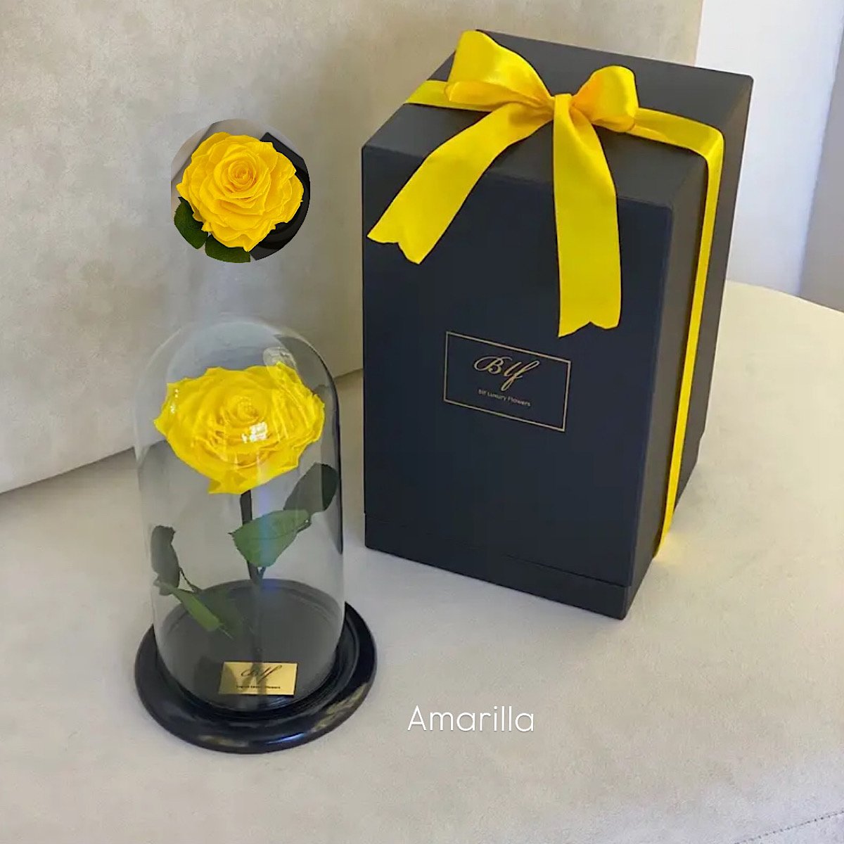 Revive y resalta esos momentos mágicos con nuestra rosa premium preservada con duración de tres años en domo de cristal y estuche de lujo.