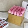 - El interior de la caja contiene espuma floral que absorbe y retiene agua, ayudando a mantener tus rosas hidratadas. Gracias a esto, puedes conservar las flores dentro de la caja (sigue las indicaciones de cuidado)