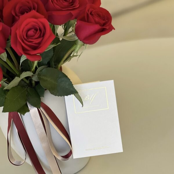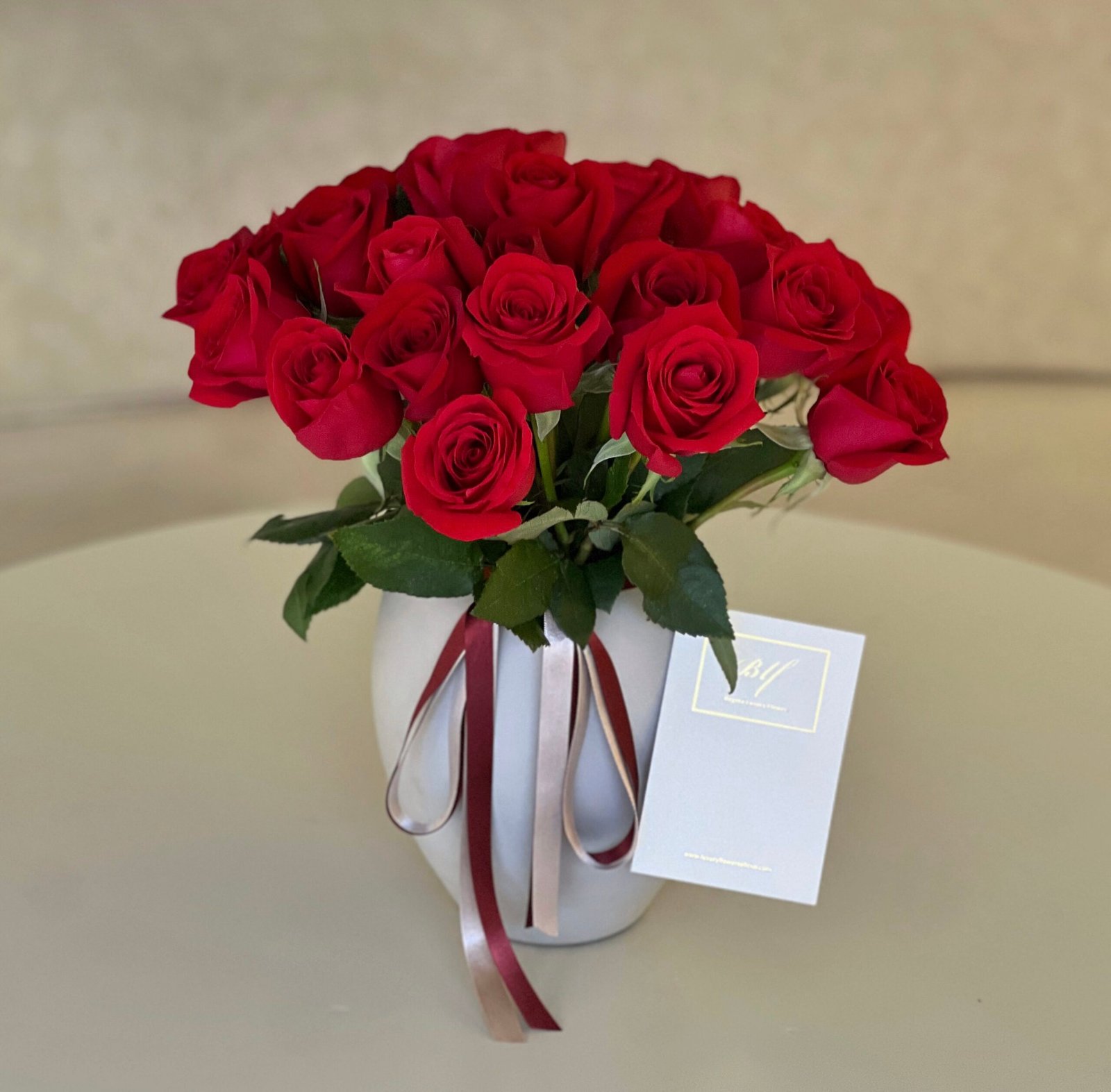 Jarrón con 25 rosas tipo exportación + tarjeta