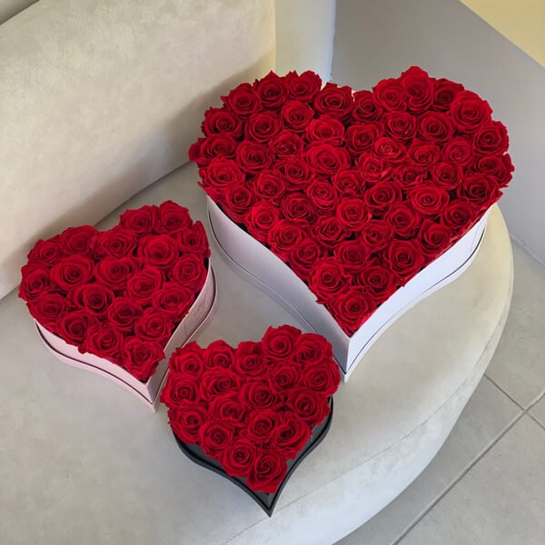 Hay amores que hacen que se nos detenga el tiempo, y que mejor manera exaltar ese amor con uno de nuestros corazones de rosas premium preservadas con duración de tres años.