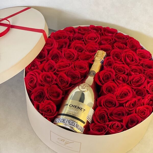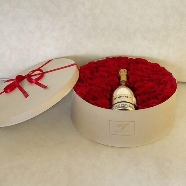 Cilindro gigante con 60-65 𝗿𝗼𝘀𝗮𝘀 𝘁𝗶𝗽𝗼 𝗲𝘅𝗽𝗼𝗿𝘁𝗮𝗰𝗶𝗼́𝗻 y nuestra exclusiva champaña JP CHENET (710ml) edición especial