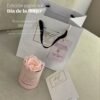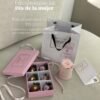 Mini urna de cristal con rosa preservada 100% natural con duración de 3 años + caja x6 fresas de chocolate + Mug personalizado