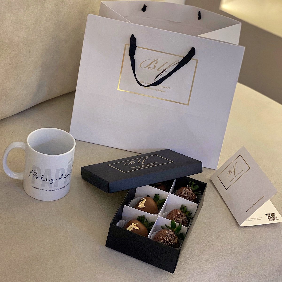 Set: caja x6 fresas con chocolate + Mug para papá